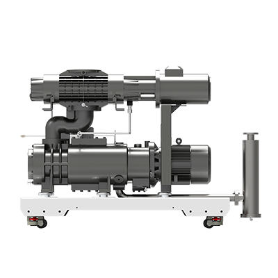 水冷設(shè)計(jì):干式螺桿泵采用水冷設(shè)計(jì),提高冷卻效率,降低真空泵溫度;真空度高,抽速大:前級(jí)泵為干式螺桿泵,采用專(zhuān)為其開(kāi)發(fā)的轉(zhuǎn)子型線(xiàn),型線(xiàn)密封好,變螺距轉(zhuǎn)子,結(jié)構(gòu)更復(fù)雜,精度更高,可高速運(yùn)轉(zhuǎn),轉(zhuǎn)子無(wú)接觸,無(wú)需潤(rùn)滑介質(zhì),極限真空度高。在接近極限真空度的過(guò)程中,抽氣速率會(huì)不斷降低,這時(shí)作為主泵的羅茨泵發(fā)揮其優(yōu)勢(shì),為機(jī)組提供抽速,在高真空區(qū)域也可保證較大抽速,能耗較小。